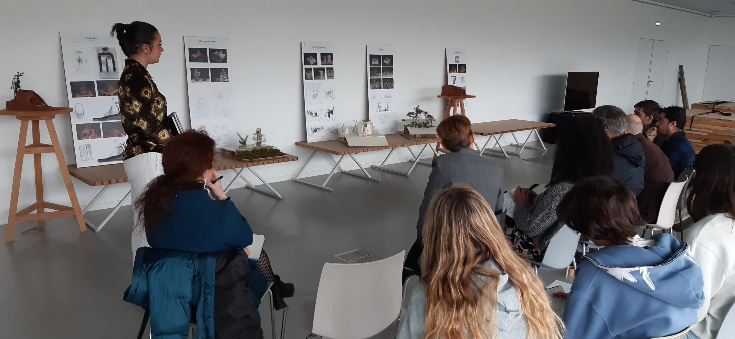 Exposition des projets architecturaux réalisés par des lycéens pendant une semaine de stage découverte (projets présentés en fin de semaine devant un jury).