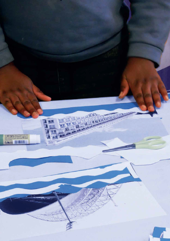 Le projet est de créer une mosaïque d’images représentant la façade, l’intérieur et des détails de l’École nationale supérieure d’architecture, ancien sanatorium ayant connu différents usages au fil du temps. Découverte et immersion des lieux permettent d’imprégner les jeunes de l’atmosphère et de l’histoire de l’ancien sanatorium : recherche des traces du passé, empreintes sensibles. Puis s’opère une appropriation des lieux par la création avec un atelier écriture et imaginaire, et un atelier linogravure : créer des plaques de gomme gravées pour représenter des éléments du passé, du présent ou du futur du bâtiment. Chaque élève contribue avec sa plaque son empreinte ou son dessin à la grande mosaïque.